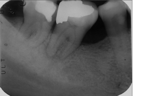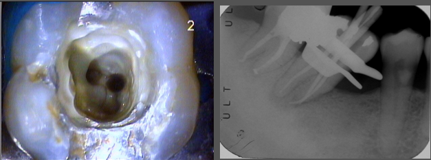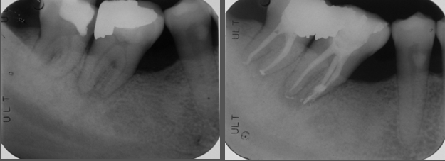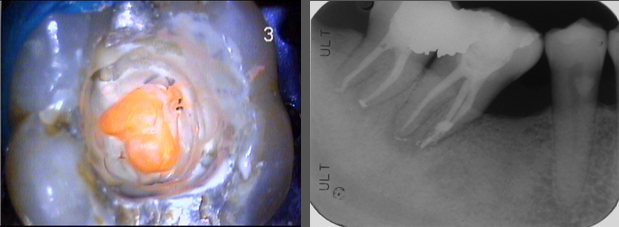 研究報告東方人的下顎第二大臼齒的C形根管大約有3成,這位患者有二次蛀牙,因此進行根管治療,使用顯微將根管徹底清潔並封填之,術後情況良好