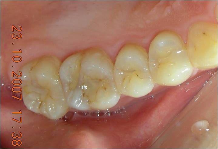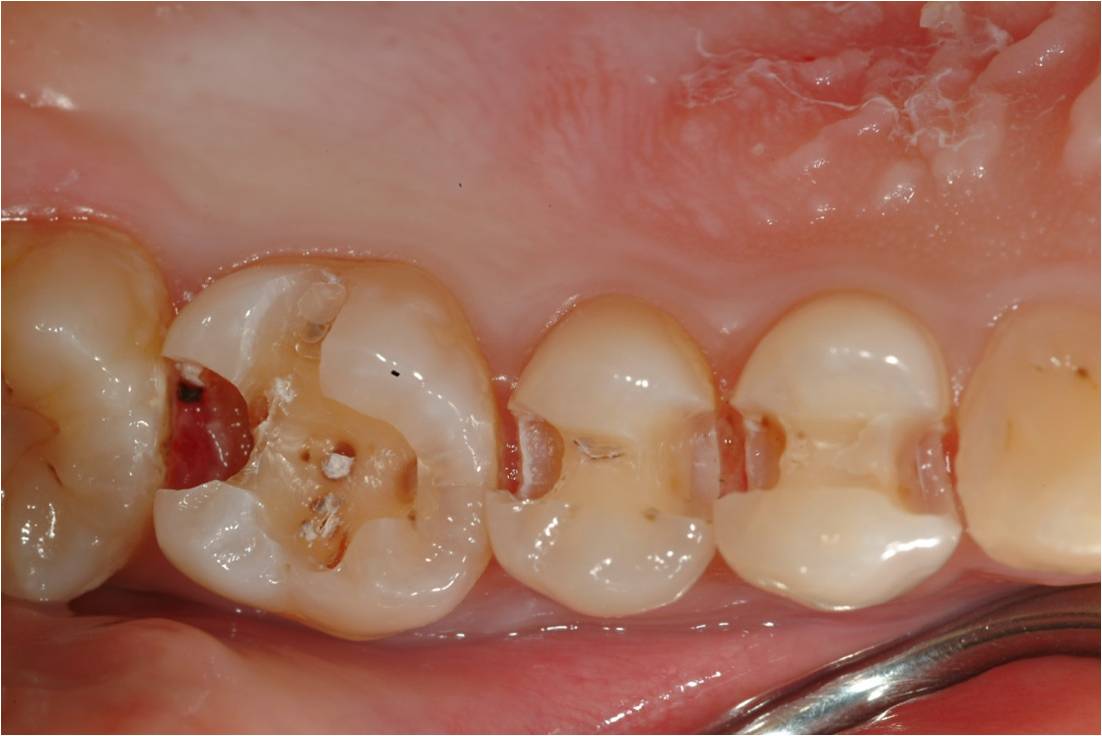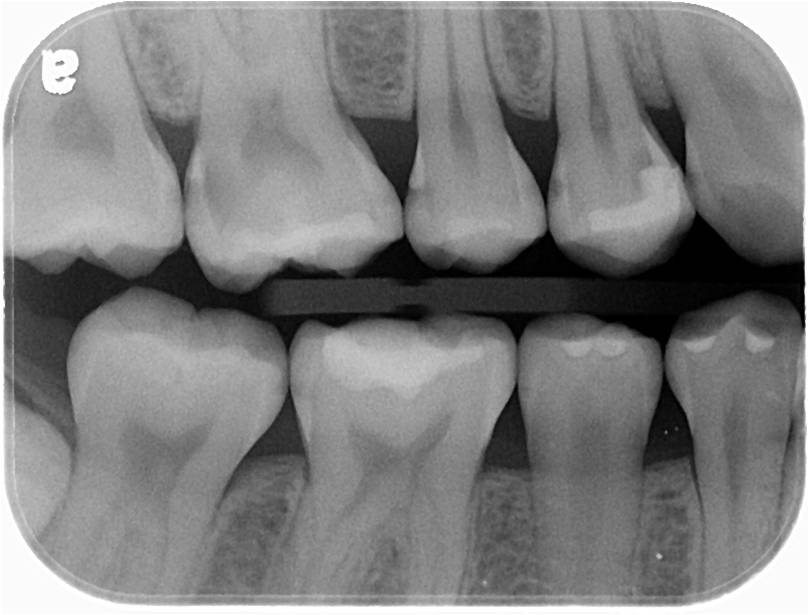 X光可見第一小臼齒至第一大臼齒鄰接面蛀牙