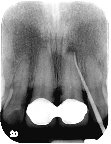 一、拆除假牙,並觀察內部牙齒的損壞情形,進行根管治療,待牙齦腫脹消失後、再進行根管充填(圖三)。