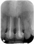 二、左上正中門齒,牙齦腫脹,使用馬來亞膠針,發現左上正中門齒根管病變(圖二)。
