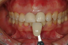 由於前牙的美觀相當重要,本院採用Cynovad數位比色機比色(圖四),並以高階數位單眼相機記錄牙齒的表面紋路及局部色澤(染色、斑點等)(圖五),因此技師即使未親臨現埸,仍可得到最精準的比色資料。
