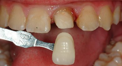 一週後 , 全瓷冠於技工室製作完畢(見圖六)