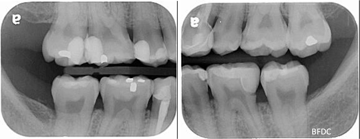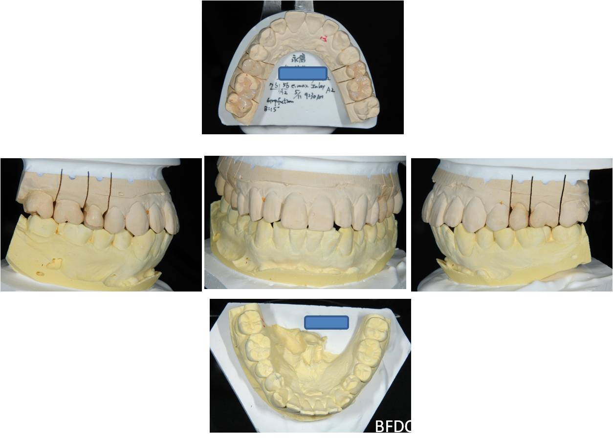 陶瓷崁體及冠蓋體-蛀牙-#1516172526 大範圍的補皮,該如何選擇,嵌體的方式就適用於大範圍的填補,因為它是一體成形, 嵌體材質多種,以往才會使用黃金合金,但因價格昂貴且顏色太過突出,因此現在多使用玻璃陶瓷二氧化鋯等材質的全瓷冠。嵌體有其優勢,因一體成形的材料,硬度和穩定性都較高,不用一點一點填補,減少下方凹陷重複蛀牙的危機,也不會變形或染色,美觀度高很多。 #1516172526蛀牙 #1516172526蛀牙 崁體及冠蓋體修形 安裝模型至咬合器 嵌體及冠塊體製作 陶瓷崁體及冠蓋體 黏著後 黏著後X光 術前、術後比較 嵌體有其優勢,因一體成形的材料,硬度和穩定性都較高,不用一點一點填補,減少下方凹陷重複蛀牙的危機,也不會變形或染色,美觀度高很多。