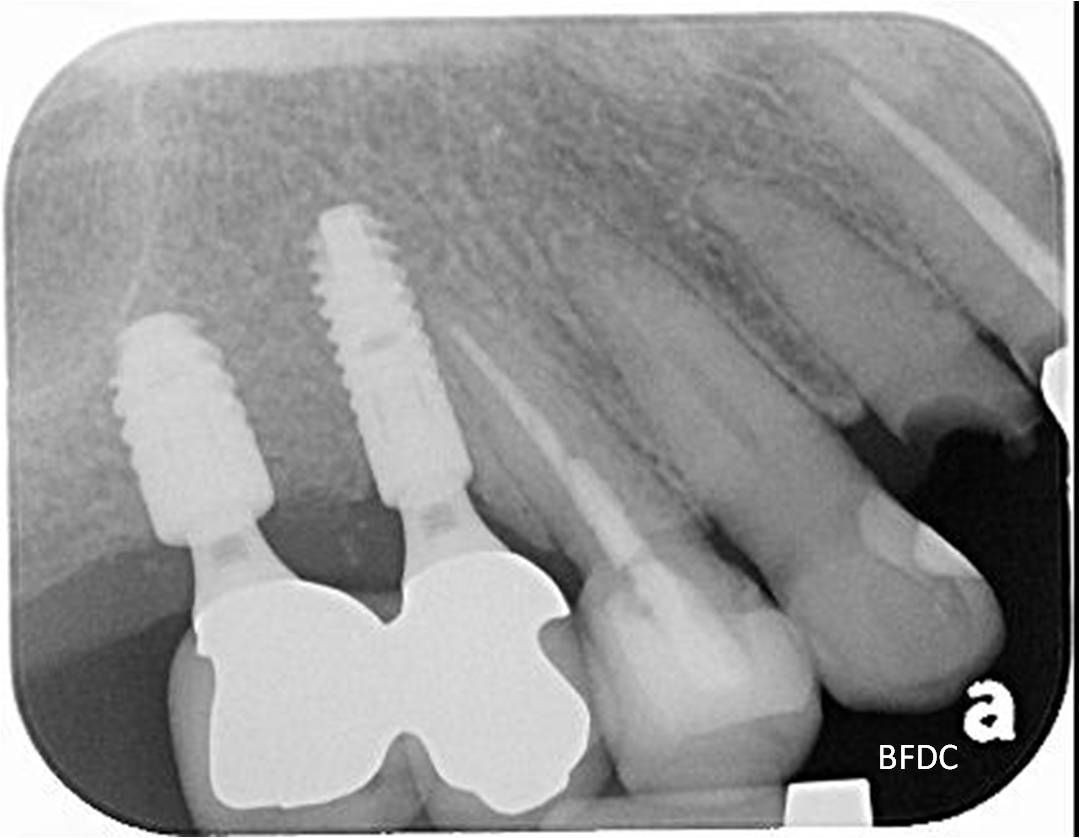 乾燥症常造成後續蛀牙等問題,本患者即由於再度牙齦下蛀牙,因此牙齒面臨拔牙命運,再後患者因單顆植牙解決缺牙問題。