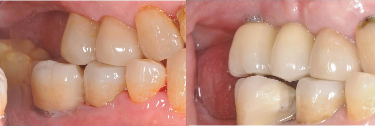 透過適當的植牙手術與膺復處置,患者可以恢復正常的咀嚼與美觀功能,在後牙區如果採螺絲固定型假牙,則回診時,醫生只要將螺絲鬆開清潔假牙,對於後續後續清潔與維護有莫大的幫助。