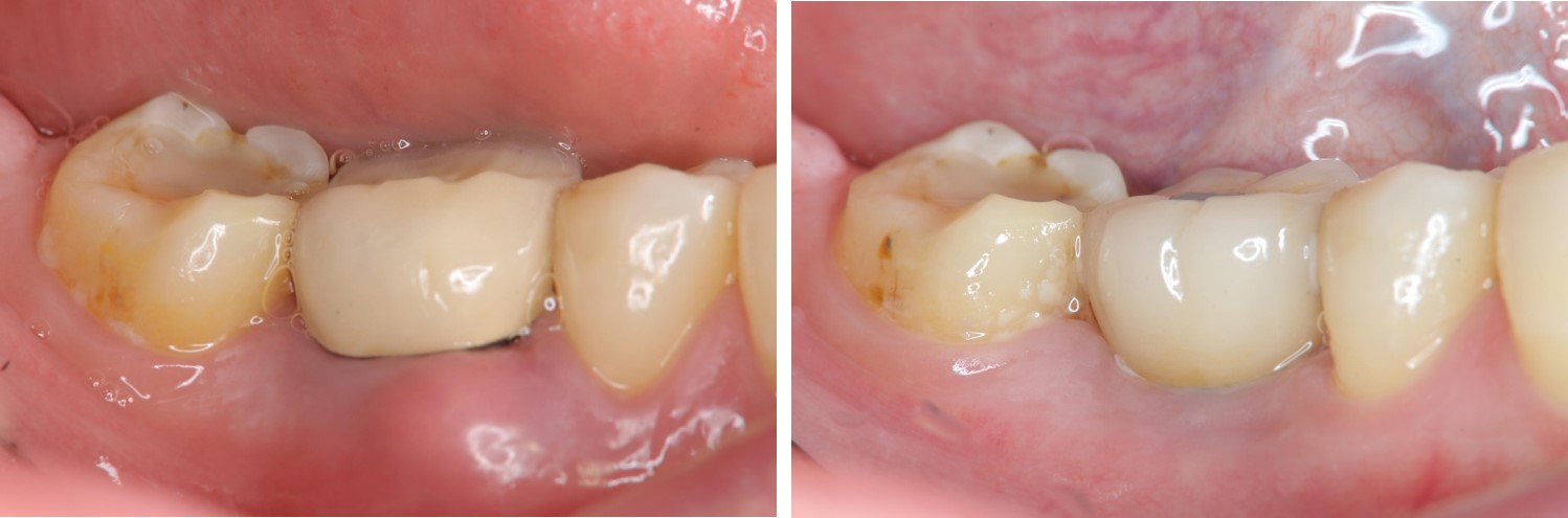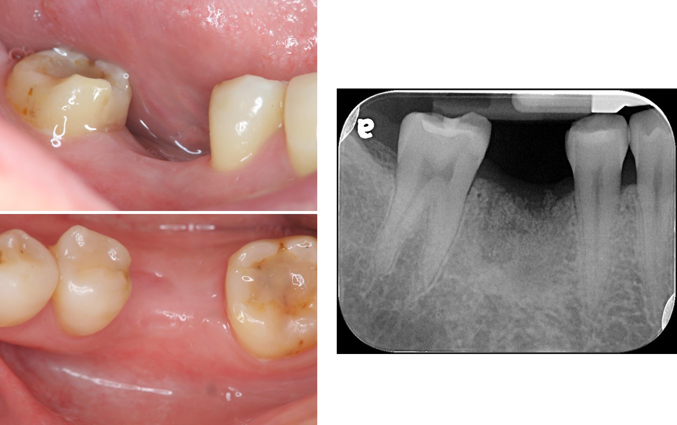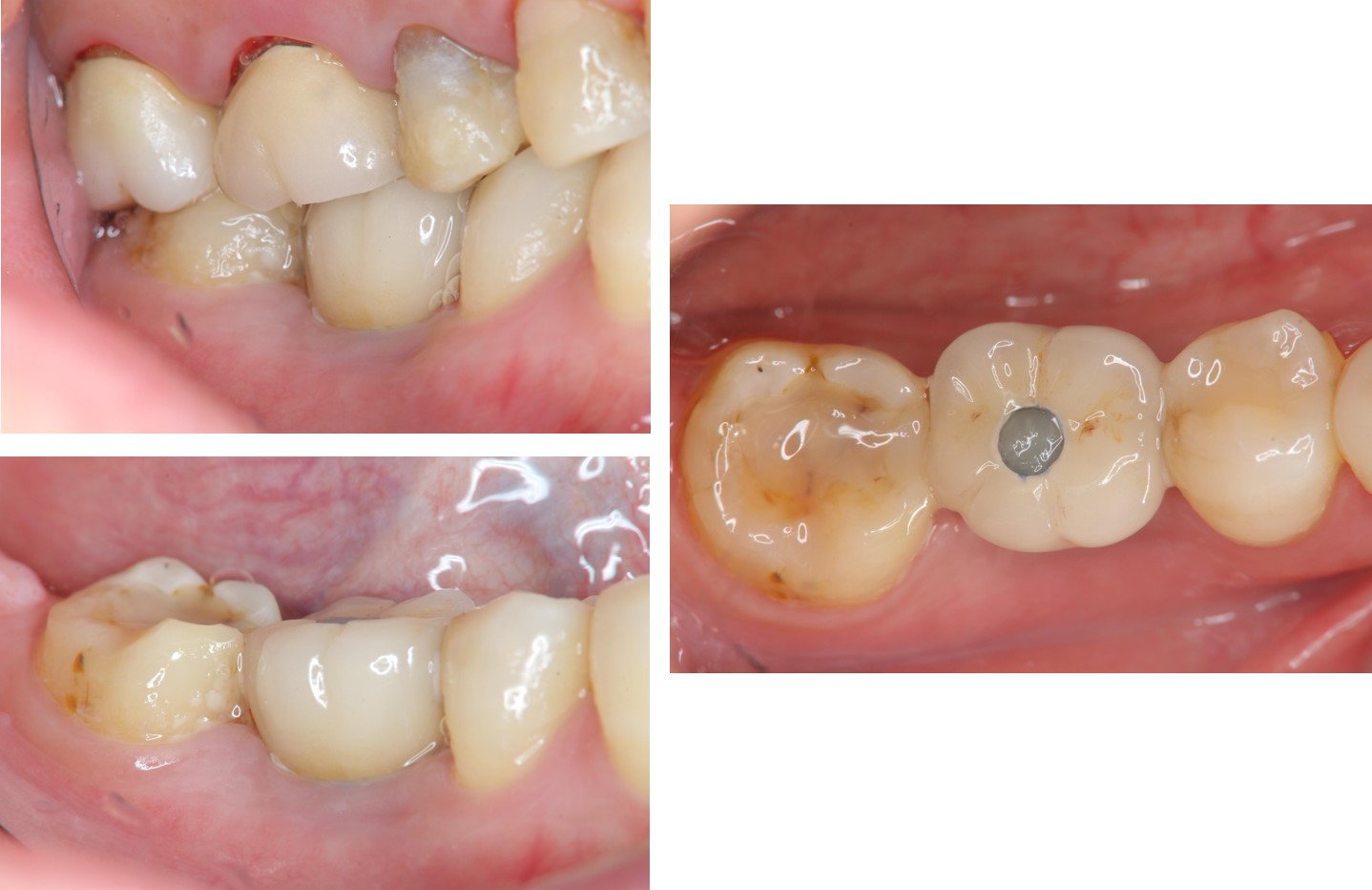 本病患嗛為多前有製作過瓷牙、釘柱等治療,但因長期咬硬的食物,導致牙齒斷裂,長胞,經診斷無法保留牙齒,溝通後,患者決定植牙