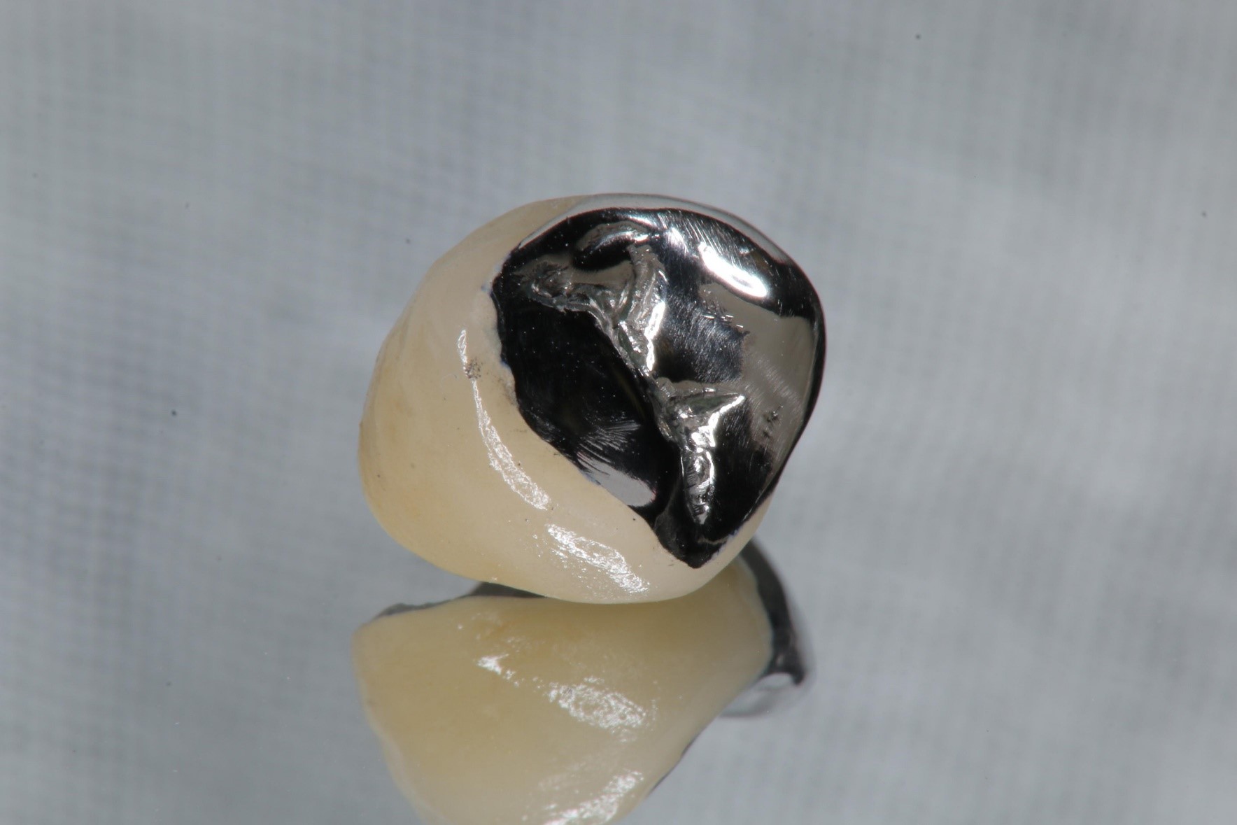考量咬合面,製作金屬面之金屬燒付瓷牙