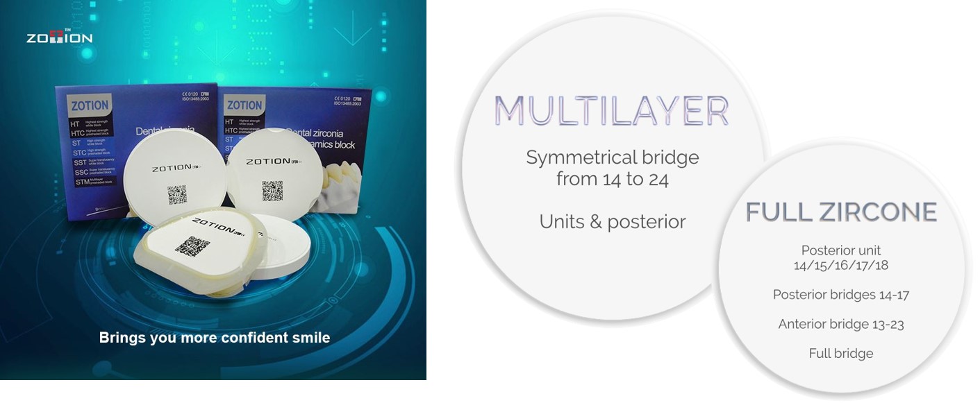 近年來由於電腦科技的進步,臨床上也開始可以開始使用一體成形的二氧化鋯全瓷冠,它的優點是強度較為足夠,但缺點是顏色較為單調,如果病人有比較強的美關需求,有時醫生會透過微燒瓷的步驟,加強它的透明度。