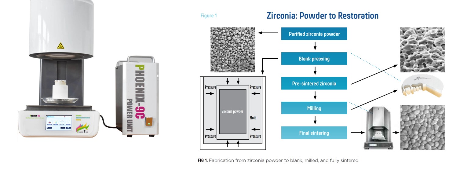 一體成型的二氧化鋯全瓷冠,經過半成品的陶瓷於車床切割後,技師會放進瓷化爐內經過數個小時高溫瓷化,讓二氧化鋯晶體充分的結合,達到最佳強度。