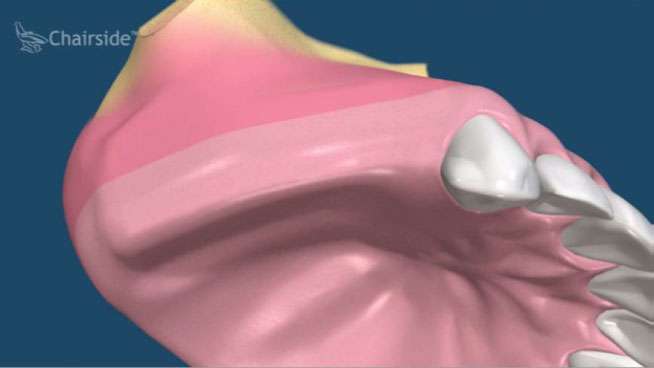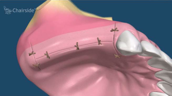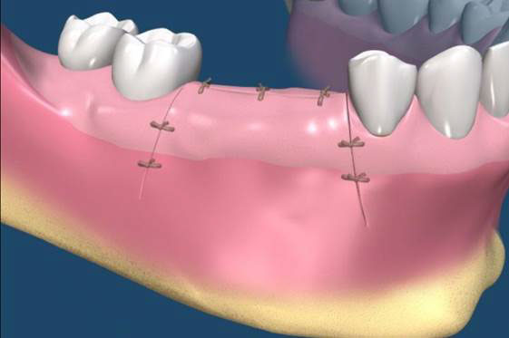 游離皮瓣移植術是將上顎硬顎區角化牙齦最多的地區,取出所需游離皮瓣,再將受贈區的植牙區去上皮,並固定縫合之,大約1-2週,皮瓣初步融合,2-3個月後,達到穩定牙齦狀態。
