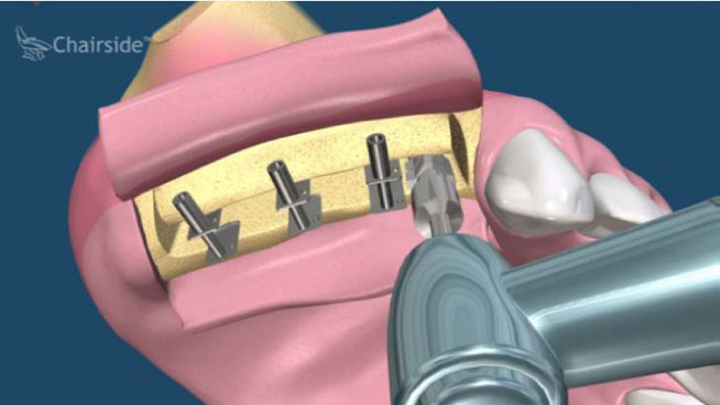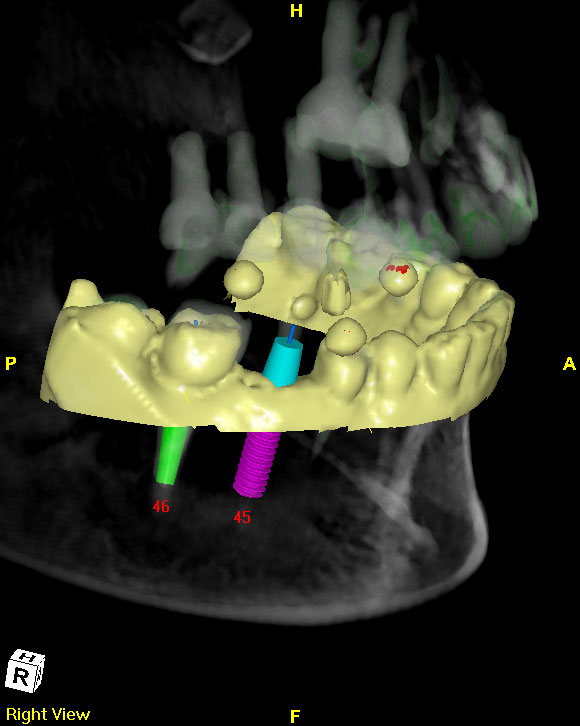近年來植牙技術已經廣泛運用在口腔重建治療,對於傳統局部或全口活動義齒使用上仍不滿意的病患,利用植牙治療也常常能得到滿意的治療結果,植牙臨床經驗和操作的熟悉度是影響植牙成敗的主要因素,透過植牙導航系統可降低經驗值所造成的誤差,如能再有效調整上穎植入時之手勢與位置,加強操作熟練度,必更能提升其精準度上的落差。這種微創手術不僅造成的傷口較小且恢復速度快,也可有效減少傳統植牙方式可能造成的錯位或傷及神經的情況。(圖60-62)