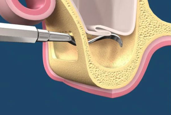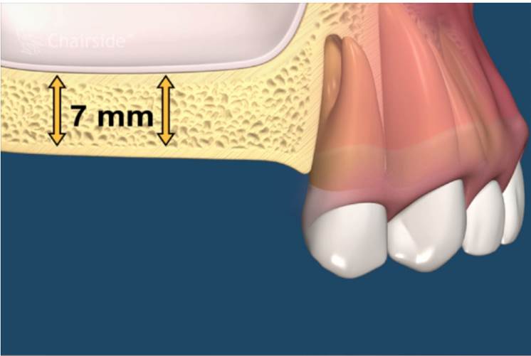 藉由電腦斷層掃描或根尖攝影比較手術前與治療後的放射線攝影影像,可以得知上顎竇底被墊高的程度。多數臨床研究結果顯示,利用骨鑿撐高上顎竇底,平均可增加約3毫米的骨嵴高度。近來年,利用氣球或水壓的術式將上顎竇撐高的術式,經過許多研究,已逐漸成熟,對於增加較多骨量(5-10mm)或無法接受側開窗的患者已逐漸成為一個替代性的選擇。(圖13-16)