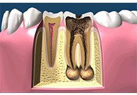 齲齒由口腔中多種因素復合作用所導致的牙齒硬組織進行性病損,表現為無機質脫礦和有機質分解,隨病程發展而從色澤改變到形成實質性病損的演變過程。齲齒是細菌性疾病,因此它可以繼發牙髓炎和根尖周炎,甚至能引起牙槽骨和頜骨炎癥。(圖01~04)