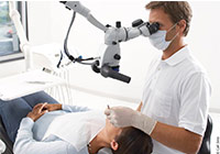 病患在經過傳統根管治療後,仍有不適,或患齒有無法接受傳統根管治療的情形,可考慮進行根尖周圍手術。根尖周圍手術的操作範圍極為狹小,專用顯微鏡可提供照明及放大,可幫助檢查牙根是否有裂紋,使專科醫師能較精準的確立感染部位,配合專用超音波等各項精密顯微設備及器械進行清創以及逆向充填,產生較微創的手術傷口,並且增加手術成功的機率。(圖18-21)