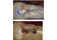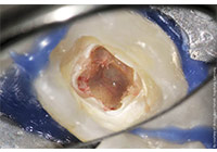 目前顯微鏡處理在根管治療主要運用在重新治療及難症處理,例如:尋找根管入口的位置,確認根管的數目與特殊型態,尋找鈣化根管或是先前治療遺漏的根管,移除根管異物。如:移除牙髓腔或根管內的髓石、移除釘柱或斷裂器裂, 根管穿孔修復: 處理前次治療發生之意外狀況。(圖08~11)