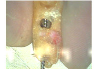 蓄意再植術是在局部麻醉下,將牙齒拔出,清除牙根尖周圍的病變組織,切除部分牙根,並對牙根進行逆向根管治療,再將牙齒植回齒槽之手術。(圖22-24)