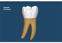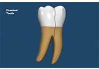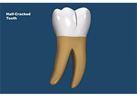 裂齒在臨床上並不容易診斷,裂痕和正常的牙齒溝紋容易混淆,X光檢查也經常無法顯示,咬痛或冷熱敏感的臨床症狀常與其他牙科疾病相似。診斷時需先排除其他可能的牙周病或蛀牙,找不出明確原因時,可能會使用染色、光纖照射,或自費的顯微鏡檢查來幫忙偵測,有其他裂齒經驗或瞬間咬到硬物的病史可以幫忙診斷;有時採用初步治療(製作牙套或圐環保護),再觀察反應結 果,也有助鑑別診斷。(圖14-17)