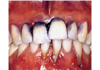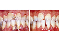 成人百分之七十都有或輕或重的牙周病,很多人卻不曉得牙周病的症狀,一般牙周病常見的症狀有:牙齦紅腫、刷牙容易流血、牙齒動搖、對冷熱敏感、牙齦萎縮、口臭等等。而牙周病主要是由螺旋桿菌引起的。螺旋桿菌會刺激牙齦,引發紅腫流血,破壞支撐牙齒的齒槽骨,導致牙齦萎縮、牙根外露、牙齒搖晃等問題。(圖01-02)