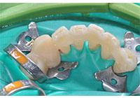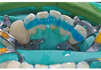 牙周病患者經過基礎治療後,多數患牙的鬆動度能減輕。但部分牙槽骨吸收嚴重,動度大的牙炎症消退後依然難以恢復正常,影響患者咀嚼功能,且容易產生咬合創傷。牙周固定術使用金屬線等將牙周炎鬆動牙和健康穩固的鄰牙上,分散患牙承受的牙合力,促進牙周組織修復,是牙周治療的重要組成部分。(圖7-10)