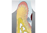 牙周再生手術是一種要求較高的牙周手術,其成功取決於多種條件的滿足,這些條件是:嚴格的適應證選擇;牙齦的炎症被有效控制;骨內袋中的肉芽組織應當儘可能被清除;生物膜在齦溝“領口”處應與牙根面盡量密合,以保證無齦上皮長入;生物膜與牙根之間應保持充分的空間,即足夠的膜根間隙;齦瓣應將生物膜完全覆蓋;術前術後有效的菌斑控制。(圖21-25)