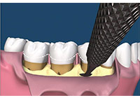 牙周病的非手術治療, 包括牙齦上及牙齦下的結石清除和整平, 以及病人口腔衛生的確實執行. 治療的目的期待能夠藉由減低口內的細菌量, 和改變口內細菌的組成 (減少致病細菌的比例) 來減低發炎的程度, 並期待牙肉能與清潔過後的牙根作再貼合的動作, 希望能最終達成降低牙周囊袋深度的目的.