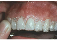 角質化牙齦移植是牙周整形手術方式之一,是將上顎腭側或無牙脊上的牙齦取下後,再移植到角質化牙齦缺乏的位置,由於牙齦的再生能力強,傷口約術後1~2週即恢復穩定,牙齦捐贈區也會漸漸恢復原貌。(圖31-34)