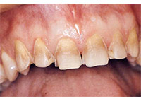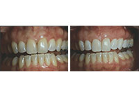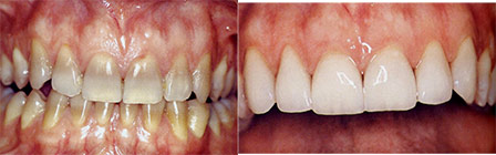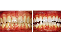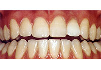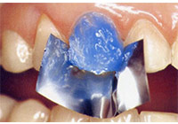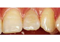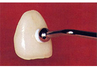 陶瓷貼片俗稱牙齒美白貼片,將唇側部份牙齒以陶瓷製成之貼片黏著,以修復受損及美化顏色、形態不佳之牙齒。最簡單的說法就是在輕微斷裂蛀蝕或顏色異常的牙齒上黏合上薄薄的瓷片;而其製作步驟是將牙齒的唇側外表面磨掉薄薄的一層之後,再利用酸蝕黏合的技術,將0.2至0.5 mm的瓷片,以特殊高強度之複合樹脂將瓷片黏著在牙齒表面上。瓷牙貼片能夠改善牙齒的形狀,長度還有顏色,達到牙齒整齊和美白的效果。目前以上下前牙為主。(圖16-22)