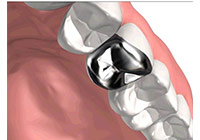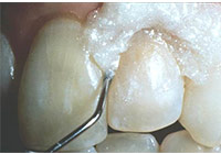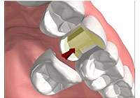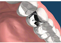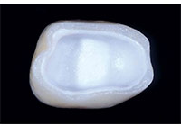 不管是補銀粉或是複合樹脂,一旦造成二次蛀牙,程度輕微的就必須挖得比之前還深,重新復形;程度較嚴重的蛀到牙根可能就必須拔掉做植牙或者牙冠牙橋、活動假牙。因此,目前對於蛀得較深、較大的窩洞,最適切的修補方式為陶瓷嵌體,陶瓷嵌體與銀粉、樹脂兩者相較,無須擔心材質收縮的問題,也沒有汙染環境的疑慮,又兼具了審美性,是蛀牙窩洞最佳的修復方式。 (圖23-26)