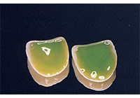 全瓷冠假牙則是完全不含金屬成分,氧化鋯材質堅硬,目前最被牙醫師所使用;全瓷冠可以依照民眾的齒色燒附一層陶瓷,讓牙齒透光更好,色澤更逼真。(圖13-15)